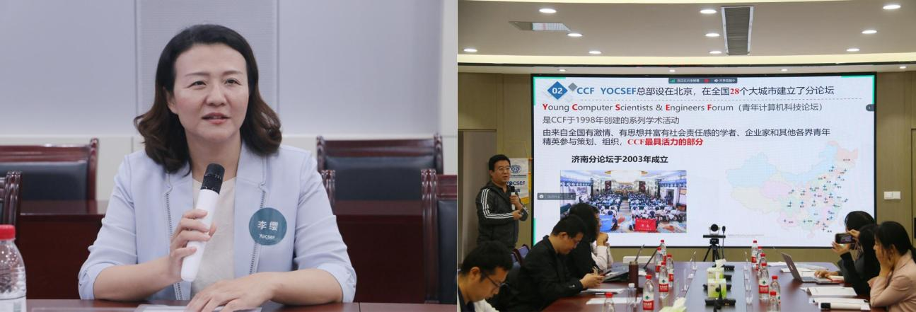 此次论坛由CCF YOCSEF济南副主席田杰(山东女子学院),CCF YOCSEF济南AC郭延辉(山东女子学院)担任执行主席,CCF YOCSEF济南学术秘书宋立莉、副主席苏胜男担任线上主席。山东女子学院李缨副校长、山东女子学院数据科学与计算机学院孙洪峰院长出席了本次论坛。论坛特别邀请了山东科技大学赵中英教授(YOCSEF青岛2020-2021届主席)、中国传媒大学王琴副研究员(中国妇女研究会常务理事)、太原理工大学董媛香教授(YOCSEF太原2021-2022届主席)作为引导发言嘉宾。
