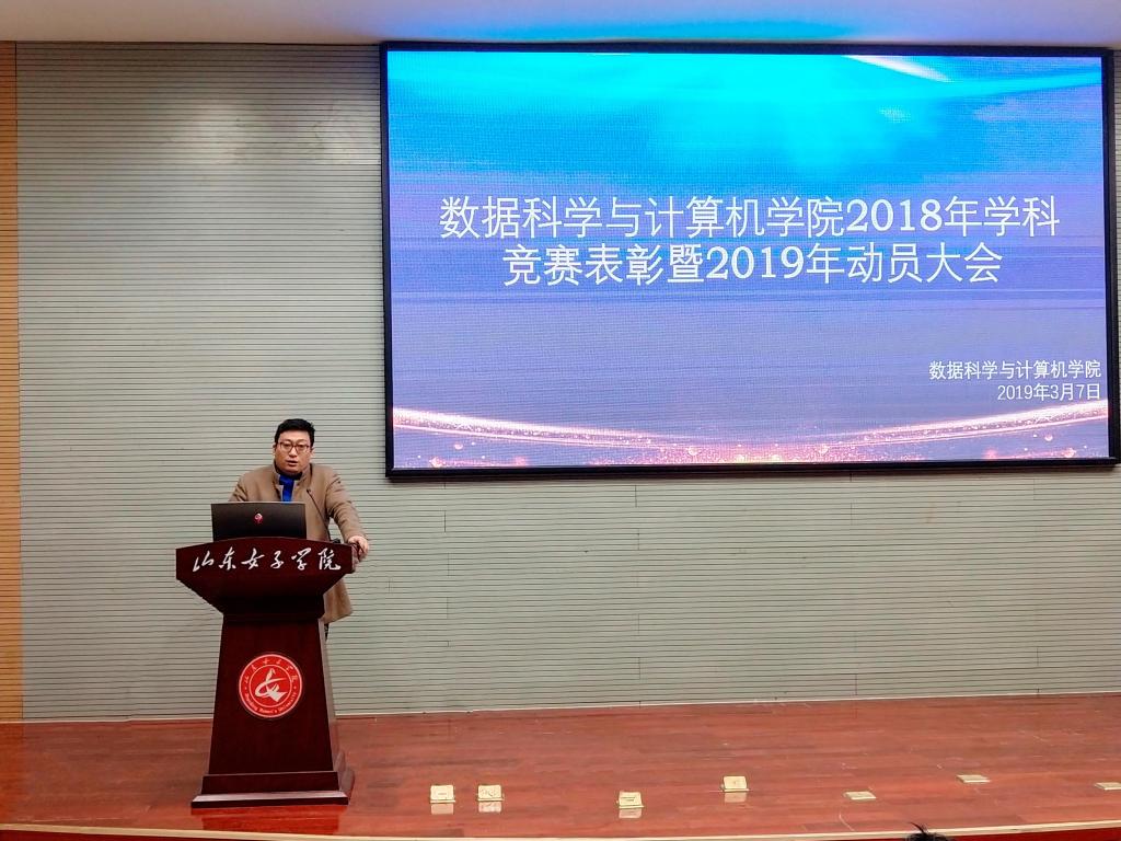 大会伊始,孙洪峰院长介绍2018年数据科学与计算机学院“回归常识”学风建设开展实效,并对今年大赛做细致动员。同学们认真聆听,深受启发。