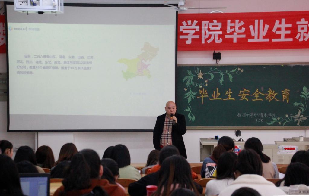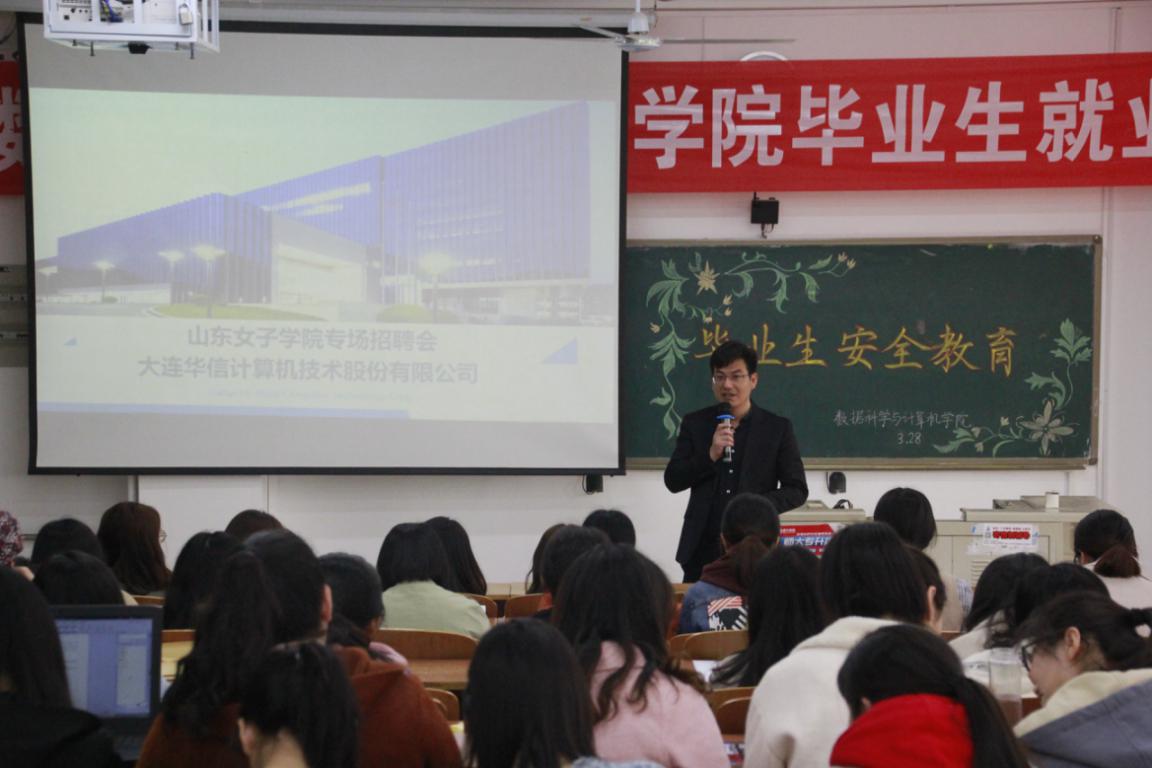 2019年3月28日上午,数据科学与计算机学院在博文楼410举行2019届毕业生就业双选会。本次双选会邀请了济南华信公司、鲁南制药、国子软件公司、二五六互联网公司等五家企业参加,2019届毕业生参加了本次小型双选会。