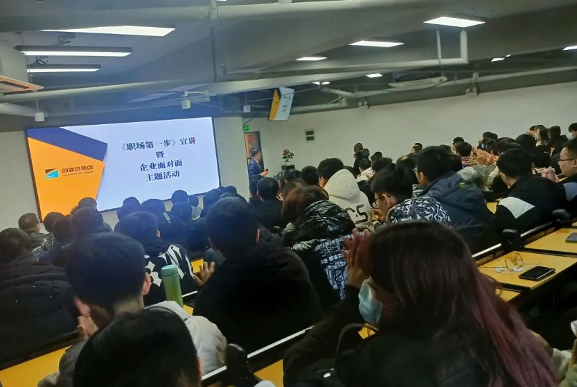 本次活动由创新谷集团软件产业学院赋能导师郭志朋老师主持,他首先发表《职场第一步》主题宣讲。
