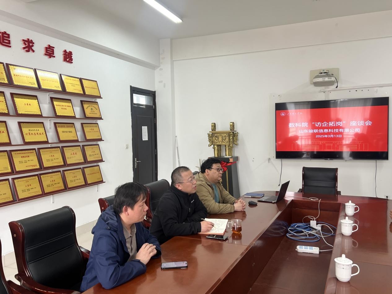 2025 年 3 月 13 日,山东骏联信息科技有限公司负责人李伯国到访数据科学与计算机学院开展访企拓岗交流。学院院长孙洪峰、副院长季振东、专业教师邵增珍和就业辅导员鲍一丰出席座谈会。