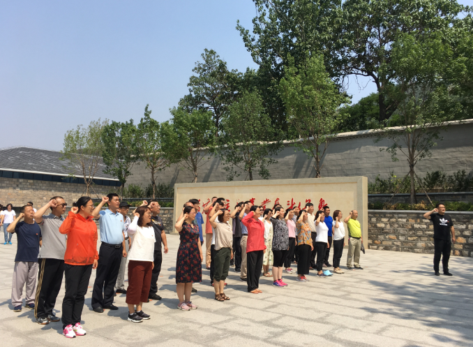 在大峰山革命根据地纪念馆,通过讲解,所有党员详细了解了大峰山革命根据地从无到有,从弱到强的发展历程。展览共分为六部分,泉城播火,光照长清;国难当头,浴血奋战;同仇敌忾,共筑长城;坚如磐石,迎接曙光;奋起自卫,欢庆解放;遍地英雄,不朽丰碑。在血与火的革命淬炼中,大峰山革命根据地从一个胜利走向另一个胜利,成为抗日战争、解放战争的坚强战斗堡垒,成为培养党政军干部的红色摇篮,被人民群众誉为“泰西小延安”。参观结束后,全体党员在基地“初心广场”组织了重温入党誓词活动。