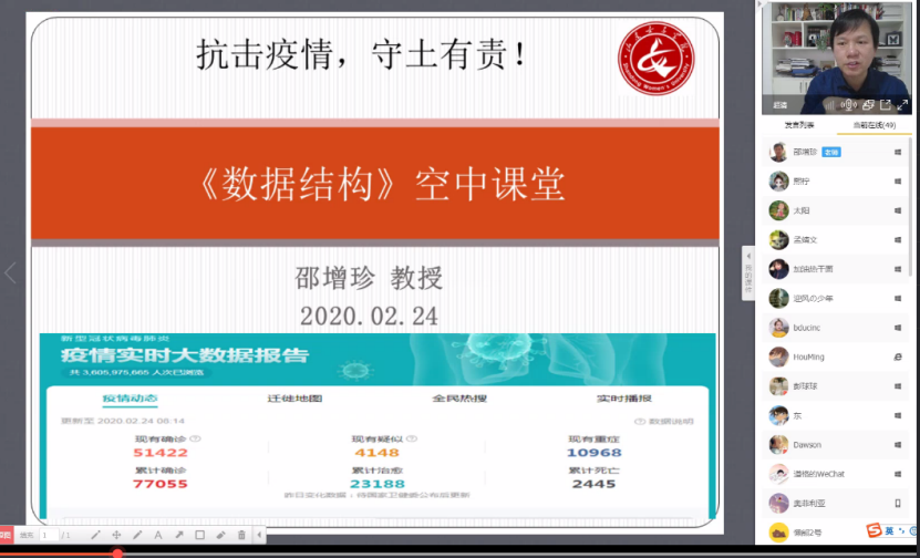疫情无法阻挡春天的脚步,同样也无法阻挡思想的碰撞和知识的交流。2月24日星期一,山东女子学院数据科学与计算机学院1476名学生、97门课程如期线上开课。所有课程分别采用直播、录播、慕课、视频会议、SPOC等多种网络教学模式展开。数据科学与计算机学院充分利用线上教学优势,以信息技术与教育教学深度融合的改革创新,推进学习方式变革,师生相约线上、共聚云端,真正实现了“停课不停学”。