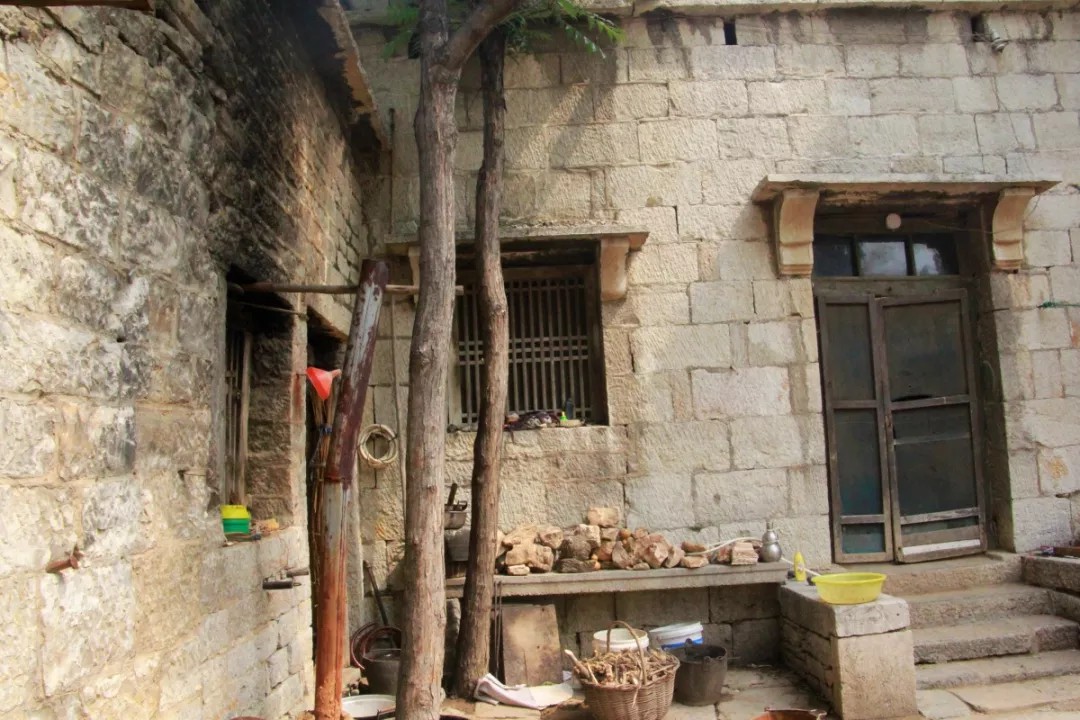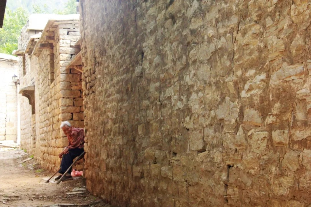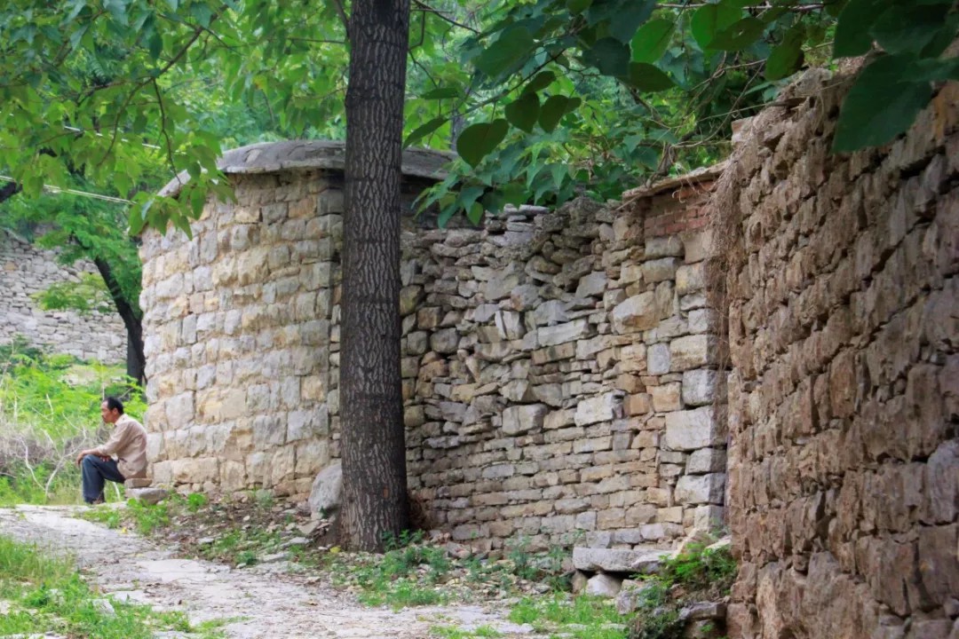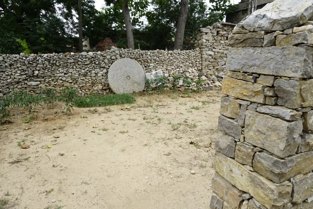 村中的主要建筑是明清期间建成,有近两百座石头房。由于石头很坚固,因此古村的格局和建筑保存极好。村里街巷也全部由石头铺成,历经岁月,反射着悠悠光泽。我们随着村支书去了村民家里和一个小庄园,果树围绕,背靠青山,幽静自然,老碾、粮仓和古房相得益彰。我们除了宽敞的大道,还有些仅容一人通过的小巷。整个古村坐落在山峪里,就一个出口,有较强的防御功能。