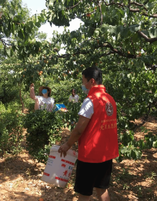 当日气温高达37℃,依然阻挡不了党员志愿者的服务热情,大家积极投身果园中帮助农户采摘成熟的玉杏。志愿者的身影忙碌在果园的每个角落,他们有的爬上梯子、有的攀上杏树帮忙采摘高处的杏子,努力把农民朋友的每一分心血都悉心收获。经过党员志愿者一上午的努力,共帮助农户采摘玉杏多达200斤。