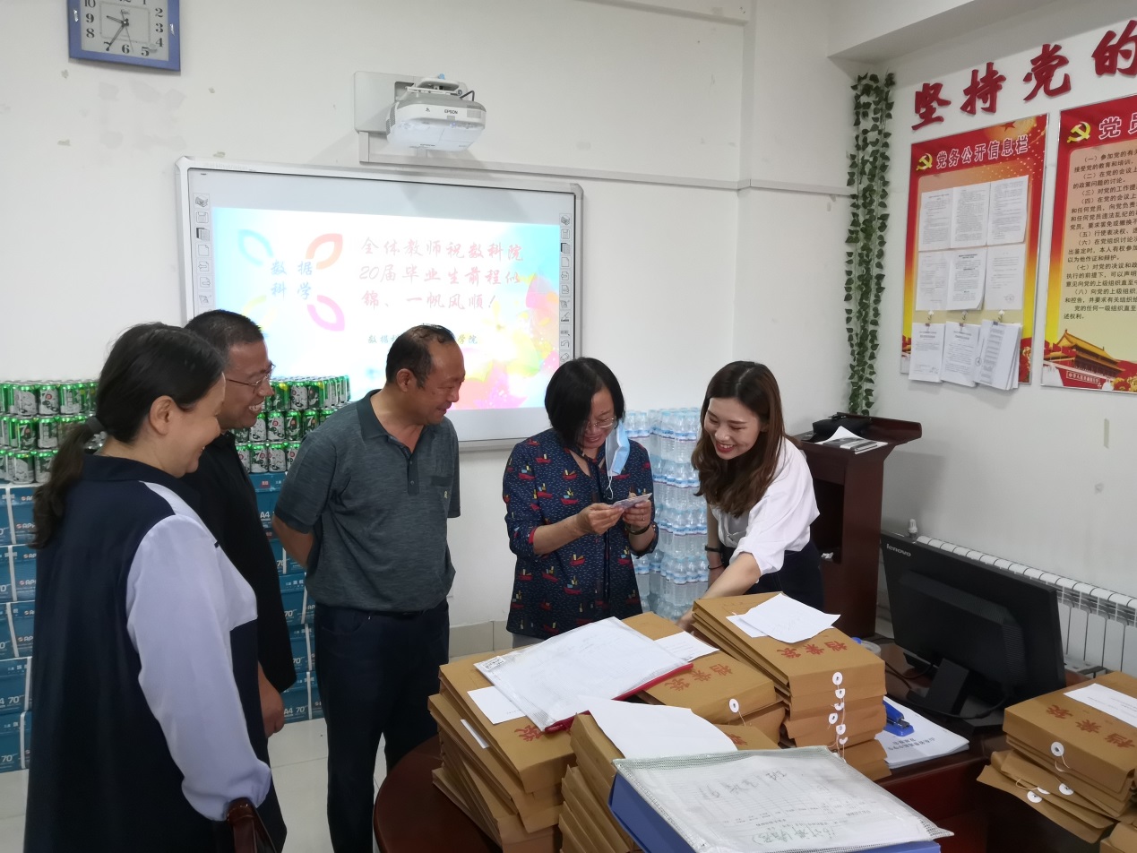 6月30日,学校党委副书记王淑霞及校团委负责人来我院博雅楼A207慰问走访毕业生。学院党总支书记潘建勋、院长孙洪峰介绍了我院毕业生就业、离校及学生党员志愿服务队加班加点服务学生的相关工作。