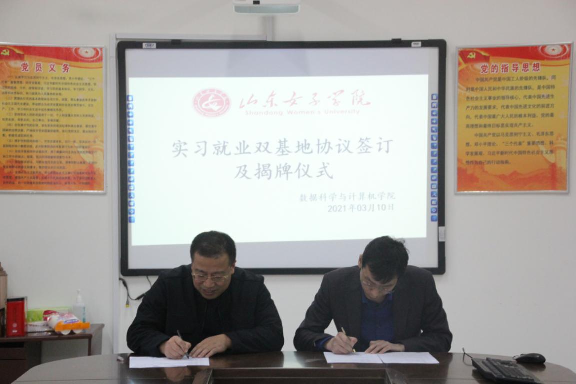 2021年3月10日上午,数据科学与计算机学院与山东佳禾讯联信息科技有限公司实习就业双基地协议签订及揭牌仪式于博雅楼A201举行。我院院长孙洪峰、副院长田杰、教研室主任刘辉出席仪式。山东佳禾讯联信息科技有限公司负责人黄海亭等参加了签约揭牌仪式。