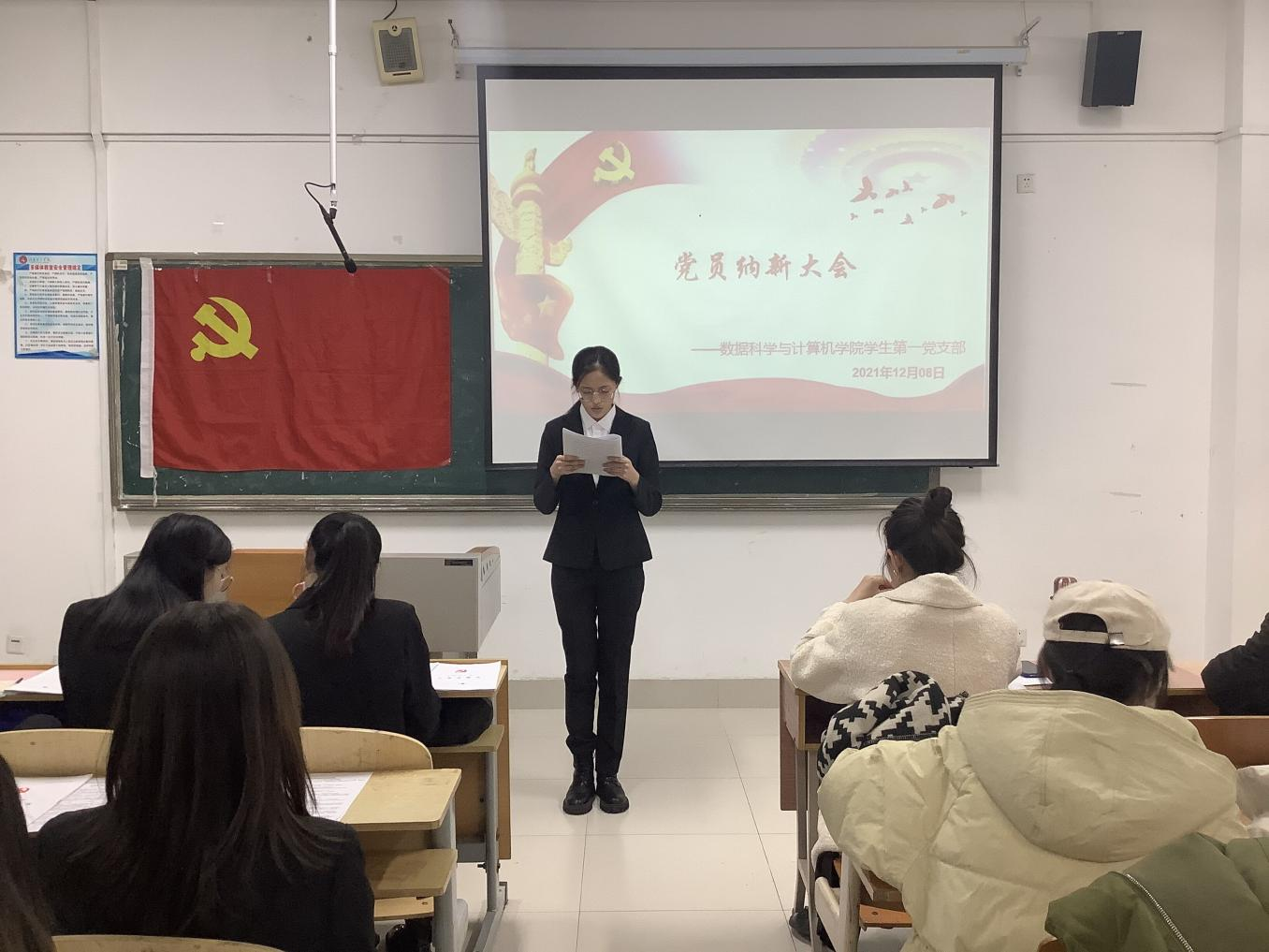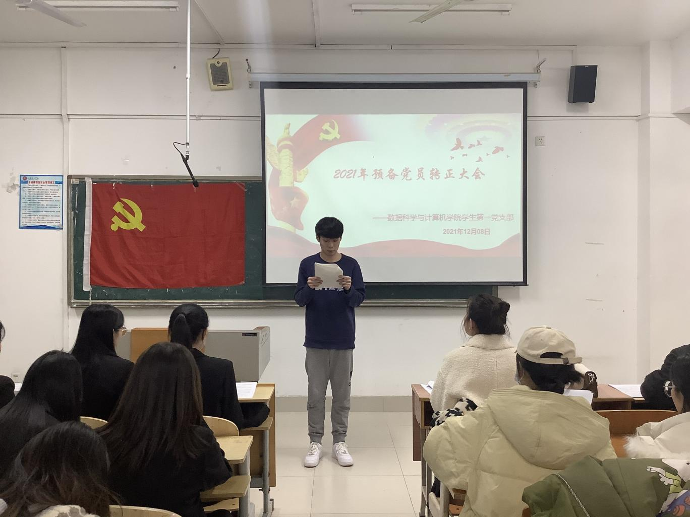2021年12月8日,数据科学与计算机学院学生第一党支部于在博学楼205召开党员纳新暨预备党员转正大会,本次大会由学生第一党支部书记魏宝懿同志主持。