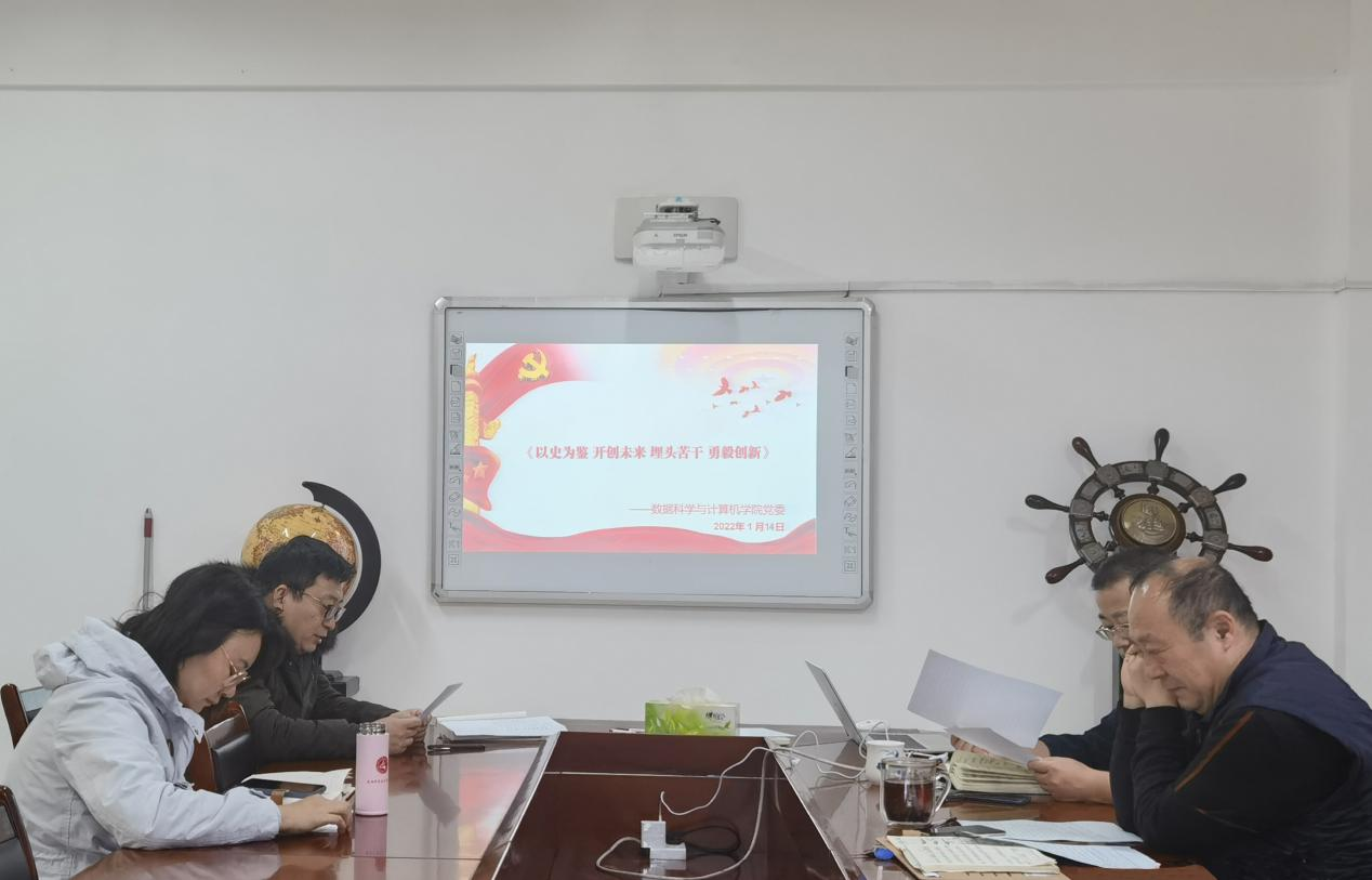 1月14日上午,学院党委理论学习中心组在博雅楼A207召开学习会议,集中学习习近平总书记在党的十九届六中全会第二次全体会议上的讲话《以史为鉴 开创未来 埋头苦干 勇毅创新》。本次学习由党委书记潘建勋主持,中心组成员参加学习。