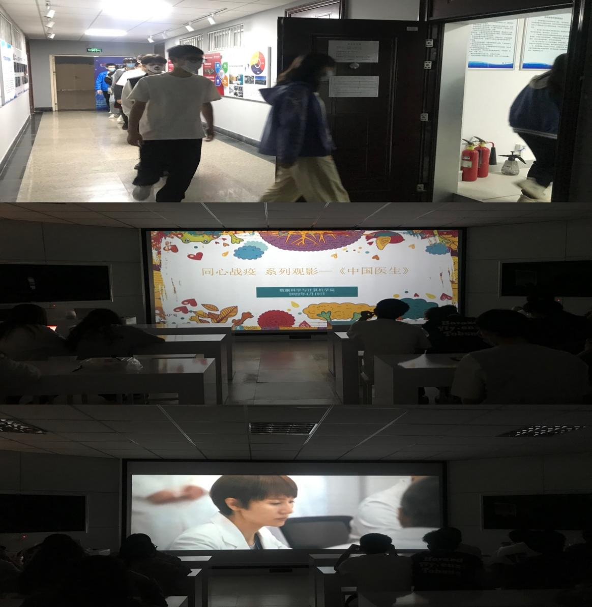 学院利用数字媒体工作室的放映设备,组织每周一次“同心战疫”系列观影活动,本周观看了抗疫题材电影《中国医生》。影厅可以容纳30名学生同时观影,观影期间时刻做到疫情防控不松懈,学生佩戴口罩,间隔一米,有序排队进场观影,在享受观影的同时,保证安全。