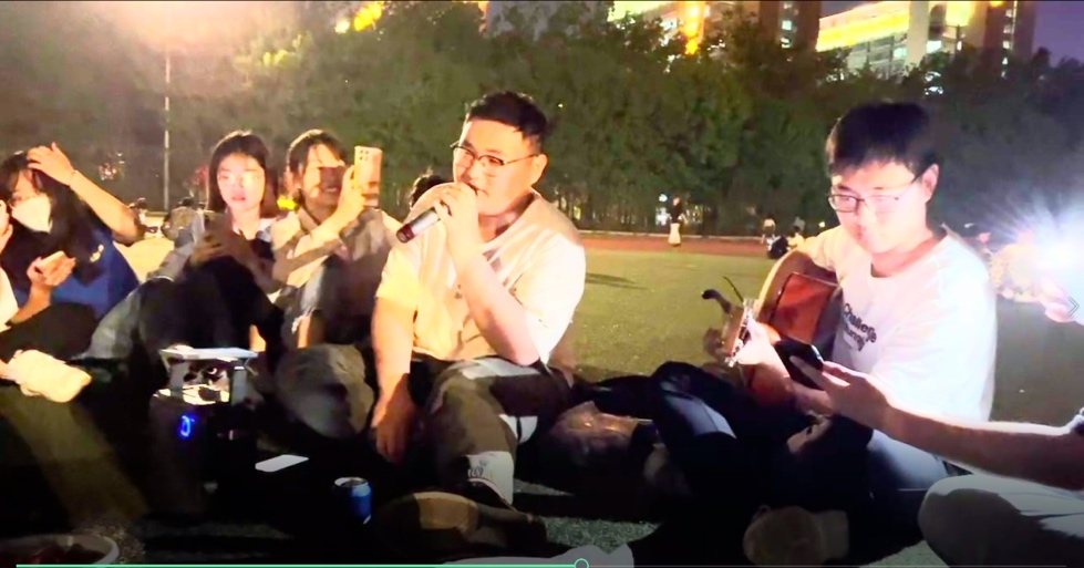 学院有一群热爱音乐的学生,为给这些学生提供展示的平台,也让学生夜晚生活丰富起来,学院定期在操场举办夜晚音乐沙龙。按照学校疫情防控规定,音乐沙龙参加人数最多不超过40人,学院提供音箱,学生自愿报名主唱和伴奏,提前制作并发布歌单招募观众。学生在操场围坐在一起,一首首动听的音乐感染着现场每一位观众。现场还设置学生点歌环节,学生们的热情将现场气氛推向高潮。