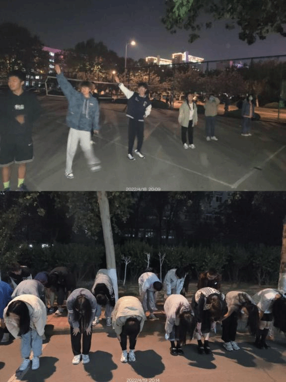 每到夜晚,校园里随处可见学生运动的身影,有的班级选择做八段锦,有的班级跟着健身博主做燃脂操,大家尽情体验运动带来的快乐,增进同学之间的友谊,让运动点亮夜晚生活。