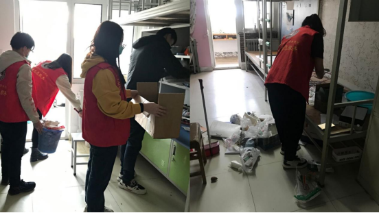 互助——不辞辛苦,协助毕业生清扫宿舍