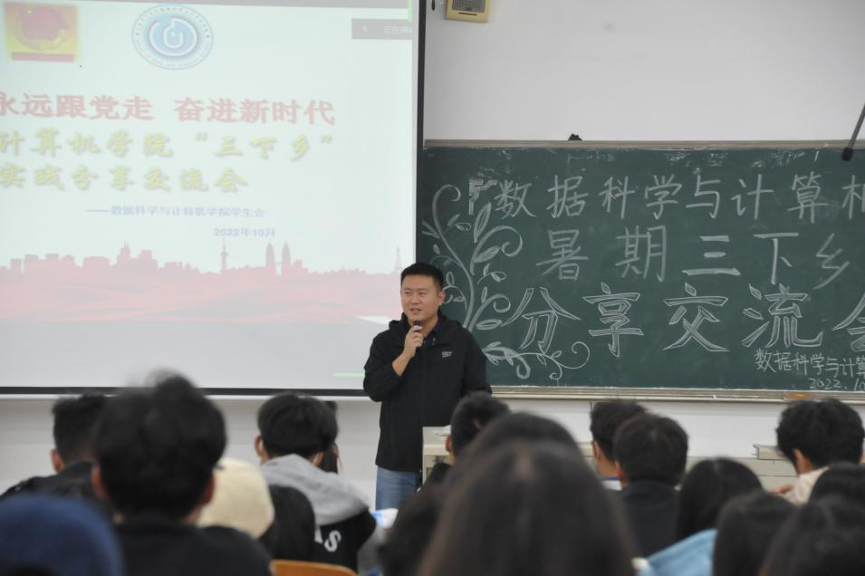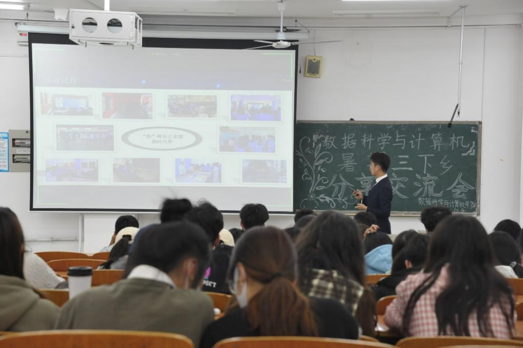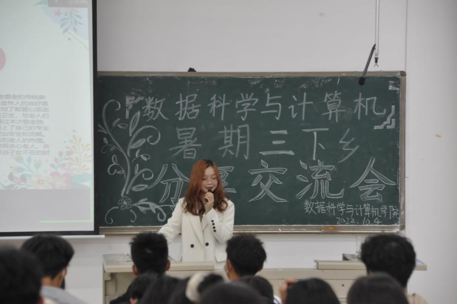 “辉煌七十载,献礼二十大”,为展示学院2022年“三下乡”社会实践成果,完善实践育人机制,10月4日晚,由数据科学与计算机学院团总支承办的社会实践分享交流会在博文楼210顺利开展。学院2021级、2022级各团支部书记、支部委员和学生代表线下参加,2022级同学线上参加。