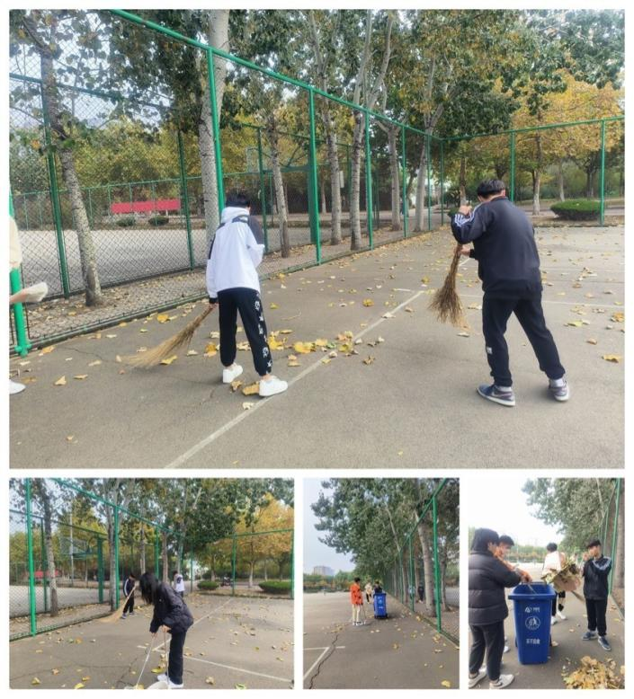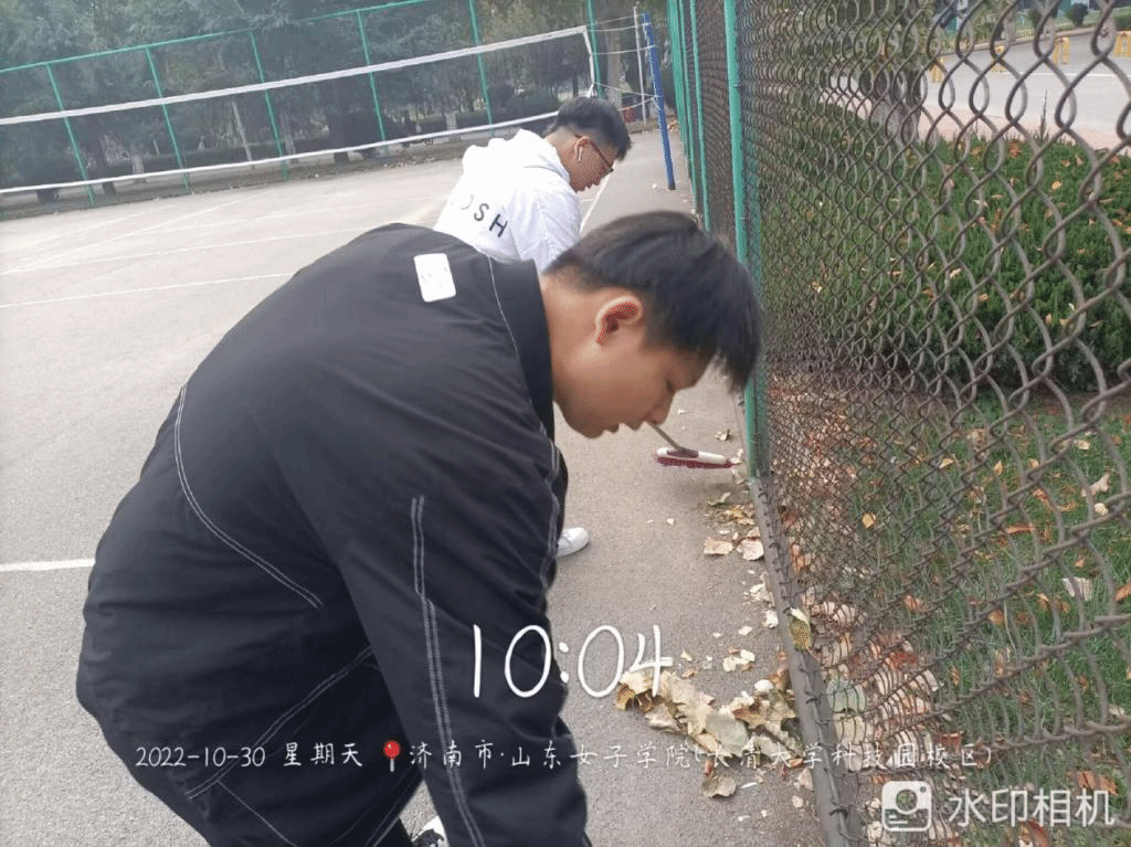 闲云为裳,落叶为装。金色的落叶虽然为校园增添了色彩,但也令排球场的地面变得危险易滑,增添了校园不安全因素。2022级团支部的同学们手持扫除工具,清扫校园内的排球场,为之后的体育教学活动和同学们的日常锻炼增加了安全性。参与此次志愿活动的,不仅有已经加入团组织多年的共青团员,也有刚刚步入大学生活的普通群众。年轻的团员们以身作则,以实际行动向其他同学展示了新时代共青团员的责任感和担当精神,积极拉动普通同学向团组织靠拢,真正成为了党联系青年最为牢固的桥梁纽带。