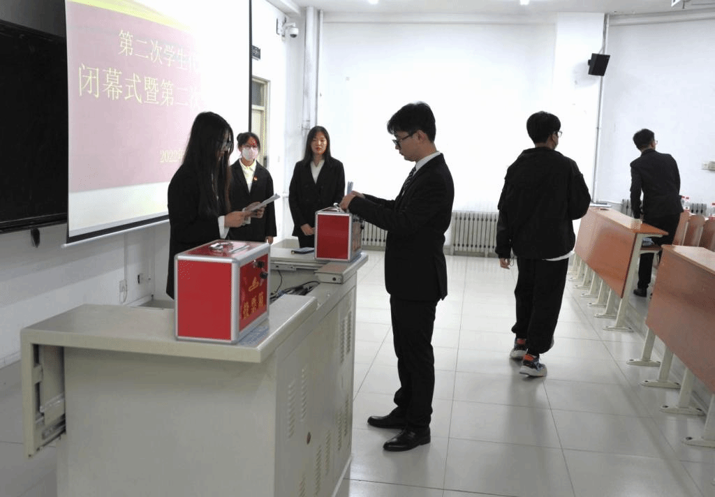 会上,全体代表听取、审议并通过了上一届学生会负责人侯钦文作的工作报告。报告全面总结了数据科学与计算机学院学生会在上一年所取得的优异成绩,进一步阐明了新时代数科青年的前进方向,并对学习宣传贯彻党的二十大精神学习等工作提出新思路、新举措。随后,通过差额选举大会选举出刘祥振、张洁、何金旭3人为新一届学生会主席团成员,刘祥振为学生会主席。选举22人为出席山东女子学院第七次学生代表大会的学生代表。最后,大会各项议程结束,在校歌中圆满落幕。