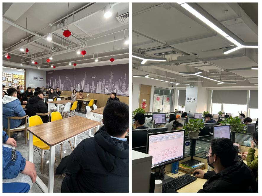 参观的最后一战是位于济南市槐荫区的日资企业济南大宇宙信息创造有限公司。该企业也是学院软件工程专业的校企合作企业。技术总监周老师与两名学院往届毕业生向学弟学妹们讲述了自己来到大宇宙之后的经历和成长,激发了同学们前来就业的热情。参观结束后,部分学生与周老师针对企业对应聘者的技术要求和能力标准进行了深入交流。