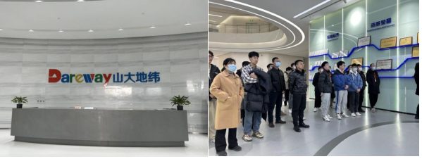 第二站是位于济南市章丘区的山大地纬。作为从山东大学独立出来的上市企业,企业负责人热情的带领学生对新建成的软件开发基地的办公环境、生活场所和住宿设施进行参观。不少学生对随行老师表示,山大地纬的办公环境十分舒适,公司业务和所学专业对口度高,希望毕业后能有机会到山大地纬参加工作。