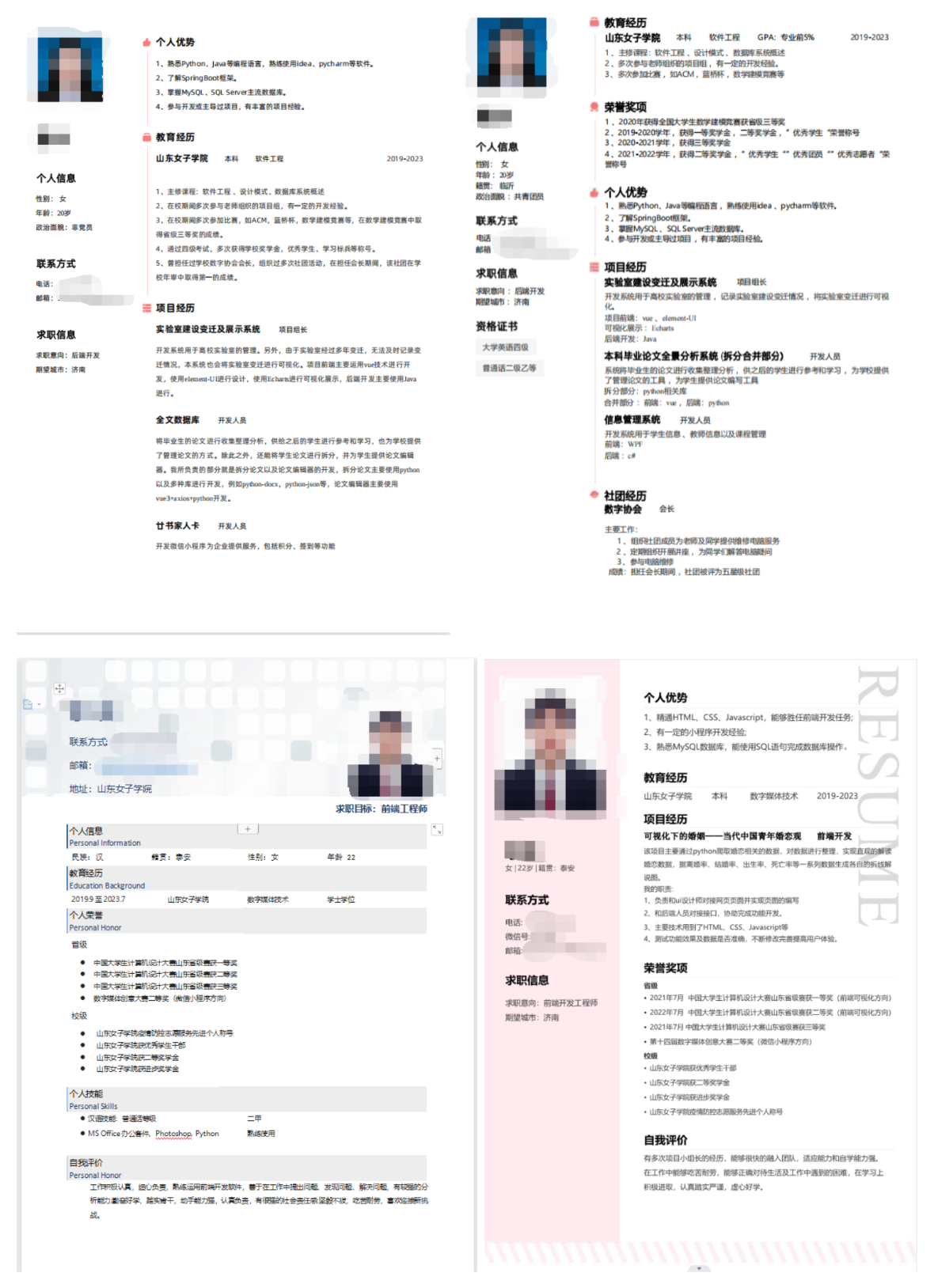学生简历更改前后对比: