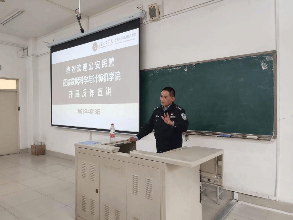 当前,面向高校青年学生的电信网络诈骗易发多发。数科学院对此高度重视,在开展防骗反诈宣传教育上持续发力,主动对接驻地公安民警开展工作,校警携手,共同营造安全稳定的校园环境和“全民反诈”的良好局面。