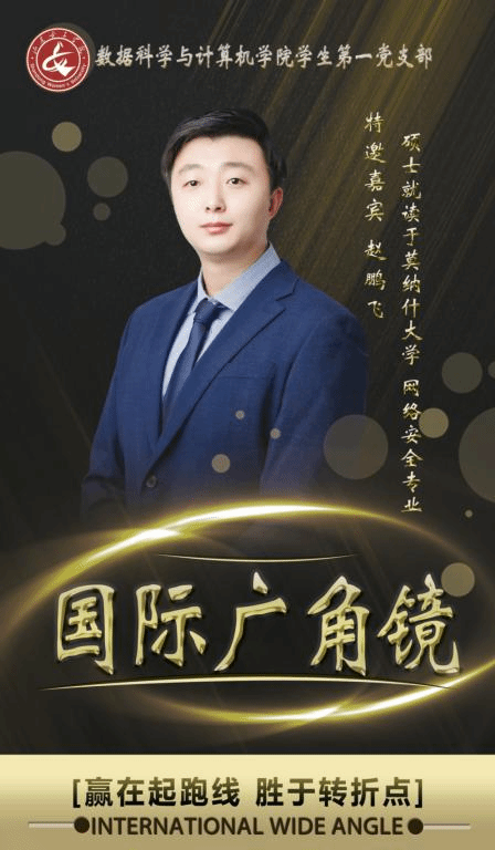 近日,数据科学与计算机学院学生党支部举办“国际广角镜”第二期活动,线上邀请来自莫纳什网络安全专业毕业的赵鹏飞学长给大家讲解专业知识和国外工作经验的相关内容。