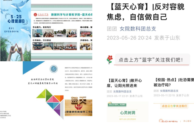 5月25日是全国大学生心理健康日,为深入学习贯彻习近平新时代中国特色社会主义思想和党的二十大精神,全面落实立德树人的根本任务,进一步加强心理健康教育工作,促进学生身心健康发展,引导学生逐步建立认识自我、接纳自我、关爱自我,发展积极乐观、健康向上的心理品质,营造阳光积极、健康和谐的心理氛围,数据科学与计算机学院于2023年5月组织开展了一系列活动,引导学生树立珍惜生命、认识自己、接纳自己、尊重他人的意识,培育积极向上的阳光心态。