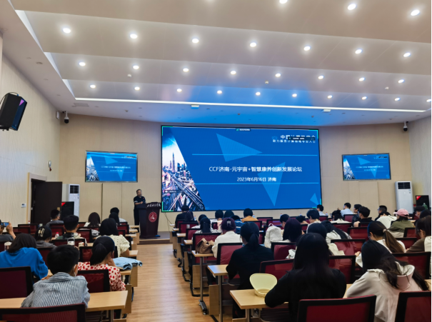 近年来,随着业界对元宇宙的认识逐渐清晰,更多的目光关注到元宇宙的应用价值、应用场景以及技术实现。为深入了解元宇宙在智慧康养领域的应用情况,推动元宇宙相关新兴技术在医疗、康复等方面深入应用,实现智能制造的进一步升级,6月16日,我校成功举办CCF济南-元宇宙+智慧康养创新发展论坛。本次论坛由中国计算机学会(CCF)主办,CCF济南承办,山东女子学院、山东大学协办。论坛邀请了元宇宙、虚拟现实、医疗、康养、人工智能等相关领域的专家,针对元宇宙与智慧康养融合的相关理论与前沿技术进行了学术研讨交流。山东女子学院数据科学与计算机学院院长孙洪峰教授主持论坛会议,校内外相关领域专家、数科院部分师生参加了会议。