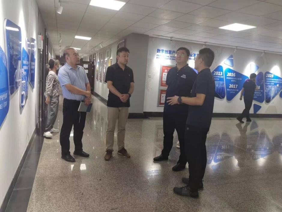 周余晓董事长一行参观了数字创意产业学院工作室,对产业学院学生的作品、取得的成果给予了高度肯定。座谈会上,双方就产业学院的架构、组织、运行和人才培养等各个方面进行了深入的交流和探讨。本次交流,对深化产业学院的“产教融合”、“产学研一体化”的建设具有积极的推动作用。希望双方继续加强沟通联系,积极开展全方位合作,更好地服务国家、地方数字媒体产业经济。