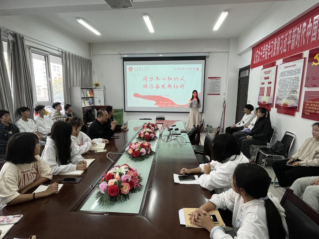 为进一步加强班级组织建设,提升班级学生干部队伍整体素质,推进优良班风、学风、院风的形成,促进班级体系规范化,提升班级质量水平,10月25日,数据科学与计算机学院于博雅楼A201会议室开展“同心齐力弘班风,踔厉奋发新征程”主题宣讲活动暨优良学风班经验分享会。会上分别由弘德大学生宣讲团成员和优良学风班主要学生干部分享班级建设经验。学院党委书记潘建勋、学院辅导员及23级学生代表出席本次会议。