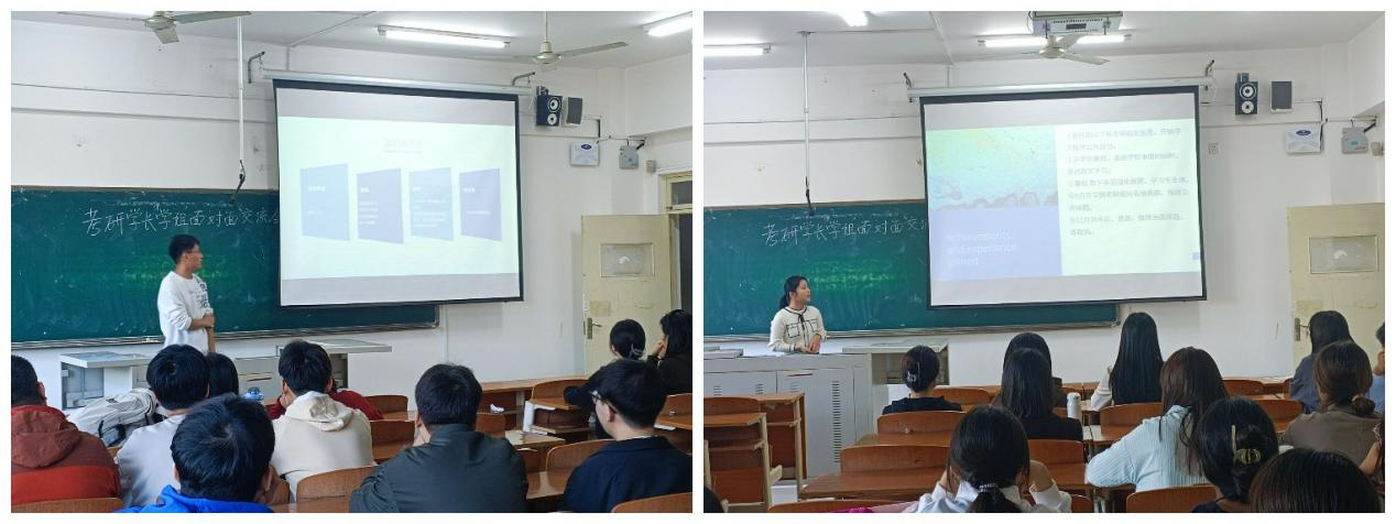 两位校友首先从自身经验出发,着重介绍了备考过程、研究生的授课模式、课题研究等方面的体验,向准备报考齐鲁工业大学与山东师范大学的学弟学妹们传授经验。