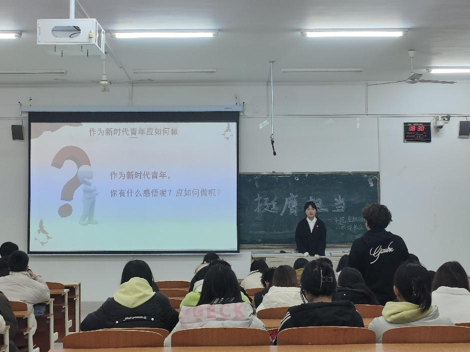 为了加强对共青团员的政治锻造,进一步团结凝聚青年学生听党话、跟党走,2023年12月1日,数据科学与计算机学院团总支在博文楼202举行了“挺膺担当砺青春,奋楫扬帆启新程”示范主题团日活动。2022级数字媒体技术(校企)团支部为主体开展,2023级各团支部书记、副书记和支部委员观摩学习。