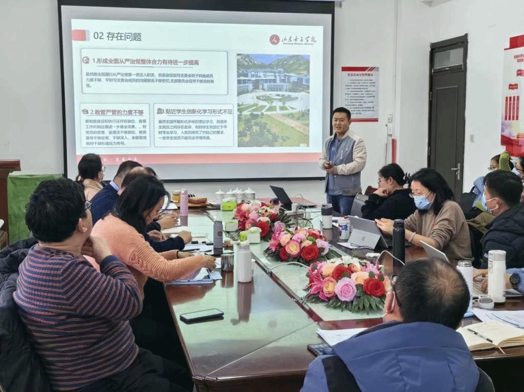 首先,教工党支部及学生党支部的7位支部书记逐一向学院党委进行现场述职,就本支部2023年度履行全面从严治党责任和抓基层党建工作进行了详细的汇报,各党支部书记围绕党支部工作标准化、规范化建设,重点阐述支部党建工作进展和成效,以党建促进学院中心工作,推动重点工作落实情况及支部特色工作和经验做法,存在的问题和改进工作的思路举措等几方面内容进行了述职。