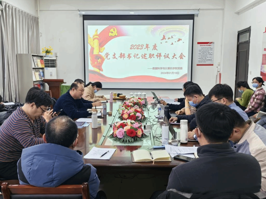 2024年1月19日,数据科学与计算机学院党委召开了基层党支部书记述职评议考核工作会。数据科学与计算机学院党委书记潘建勋主持会议并发表讲话,学院领导、各党支部书记及各支部党员同志代表参加了本次会议。