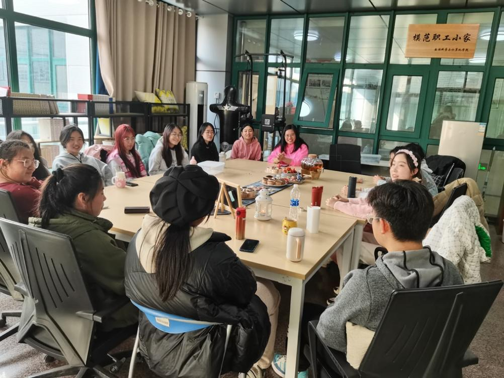 活动伊始,王子露老师向同学们分发了亲手制作的甜品,同学们也配合老师精心布置下午茶场地,气氛活跃而温馨。王子露老师首先讲述了本次下午茶活动的目的、意义,围绕“寒假收获与新学期展望”这一主题分享彼此的感受,并希望通过此次下午茶活动,能够进一步凝聚班委力量,共建美好班级。