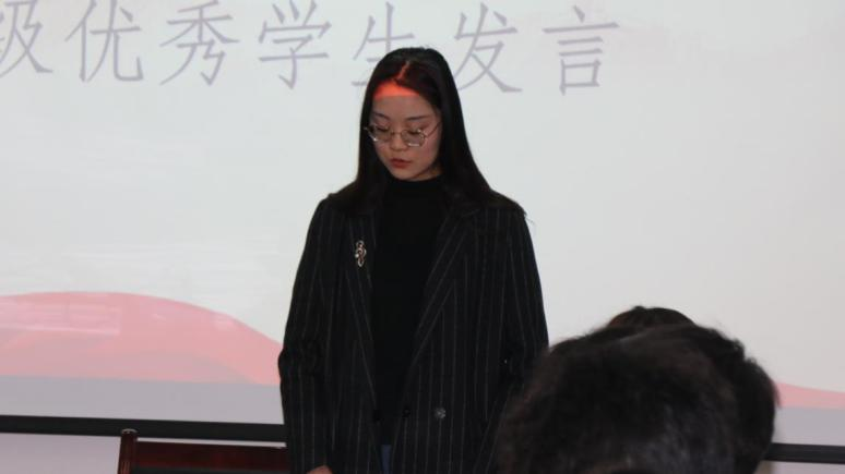 省级优秀学生候选人:人工智能(校企)22级本科班陈小雨——她从三个方面展开了分享。首先提议大家要“学会学习”,她强调作为一名学生,学习是我们的本职工作,对待学习态度要端正,脚踏实地,利用好课前课后的琐碎时间,夯实专业基础,提升综合能力。其次她建议大家要“学会承担”,作为学生会主席团成员,她说“用真情传递大爱,用奉献诠释指责,用行动树立标杆”,事事以服务同学为目的,以服务学院为出发点,积极认真的对待每一份工作。最后她倡议大家要“敢于尝试”,“无奋斗,不青春”她告诉我们要敢于挑战自我,积极踊跃的参与各类竞赛,无论结果与否,希望大家都可以勇敢走出自己的舒适圈,知不足以奋进,望远山而前行。