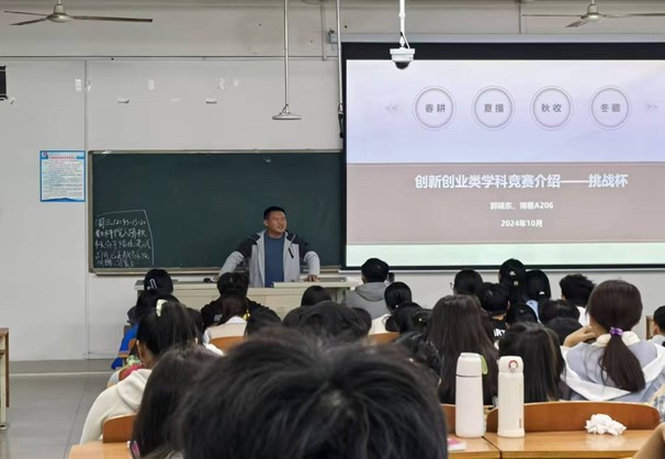会上,团总支负责老师详细介绍了挑战杯大赛的历史、赛制及“大挑”与“小挑”的逻辑关系,针对“校院班”三级赛制工作进行解读,同时详细介绍了参加各类学科竞赛尤其是综合性创新赛事对大学生活及未来发展成长的作用,他强调了挑战杯大赛对于培养学生创新能力、实践能力和团队协作精神的重要意义,并鼓励同学们积极参与,勇于挑战自我。第二阶段,学院负责科创赛事的同学结合自己参赛经验,分享了她对挑战杯大赛的规则、参赛要求等方便的理解,从选题、团队组建、项目实施等方面为同学们提供了自己的建议,让同学们对“挑战杯”大赛有了更直观的认识,也明晰了努力的方向。