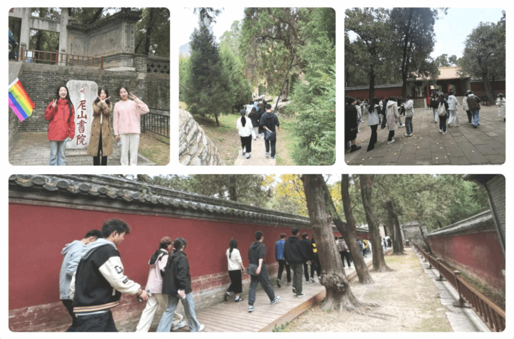 尼山孔庙,这里作为儒家礼制建筑的代表,依山而建,古老的苍松之间,飞檐翘脊若隐若现,营造出一种东方式的静谧情调和神秘氛围。在这里,同学们漫步于古建筑之间,体悟圣人的智慧,汲取文化的力量。