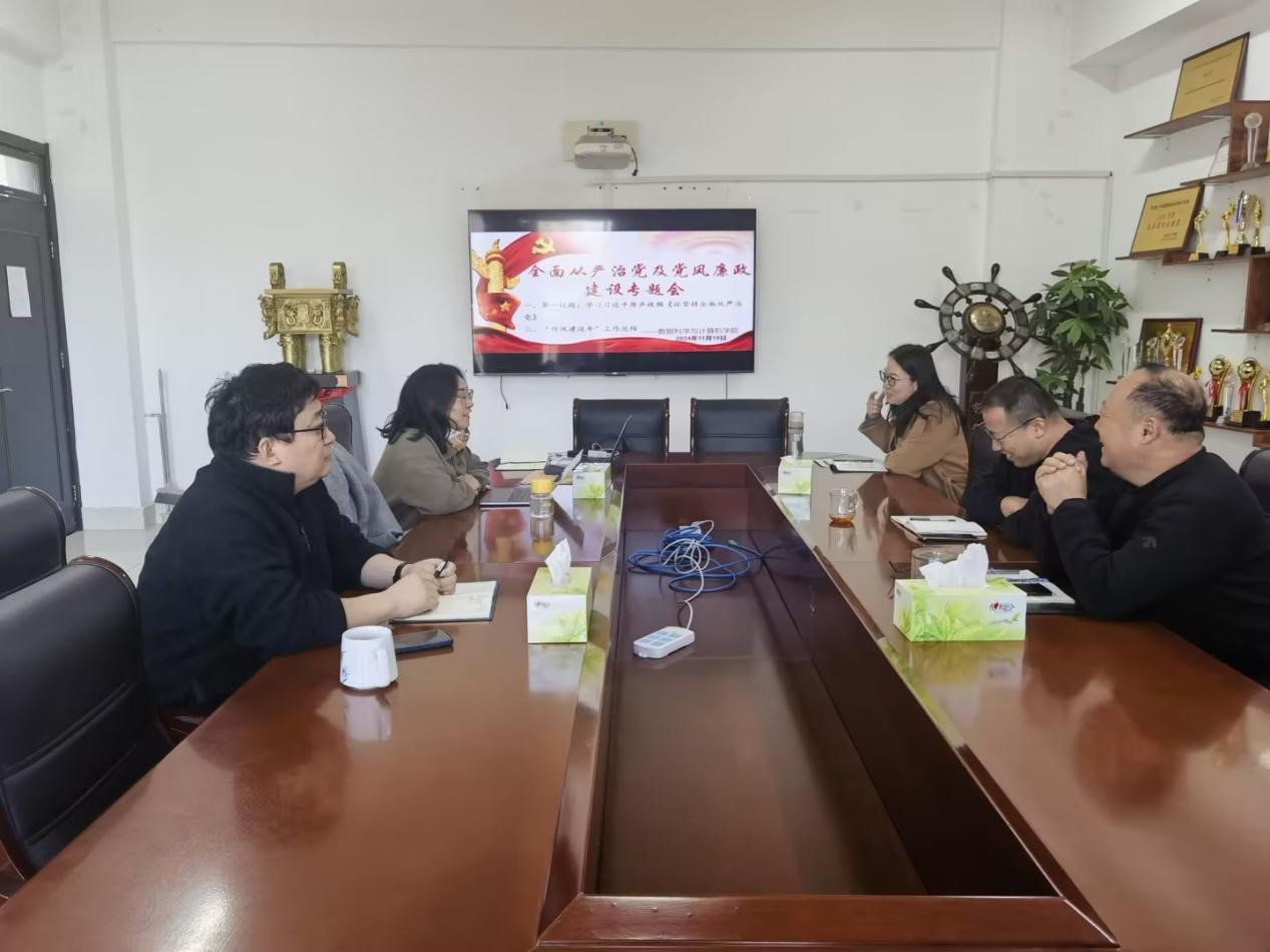 全面从严治党及党风廉政建设专题会也于同日召开。纪检委员季振东带领大家学习了习近平总书记《论坚持全面从严治党》重要讲话精神。讲话内容深刻,发人深省,为学院党风廉政建设指明了方向。随后,会议听取了“作风建设年”工作总结汇报,对自查自纠中查摆出来的问题进行了研究讨论,提出了整改措施,审议通过了《数据科学与计算机学院(人工智能学院)作风建设查摆报告》。