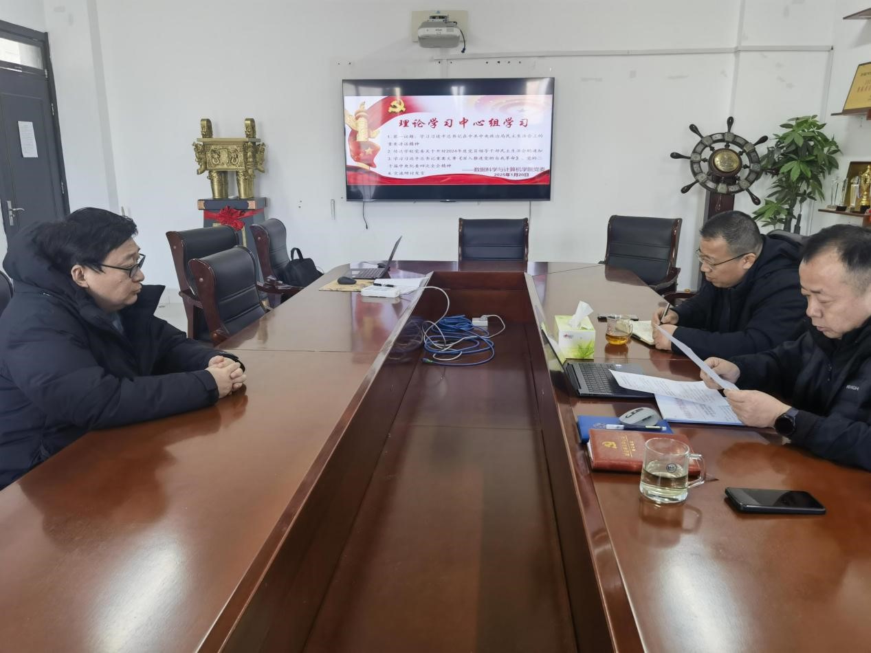 1月20日上午,学院党委理论学习中心组在博雅楼A207召开2025年第1次学习会议,会议由党委书记张明主持,副书记(兼)、院长孙洪峰,纪检委员季振东出席并参加会议。