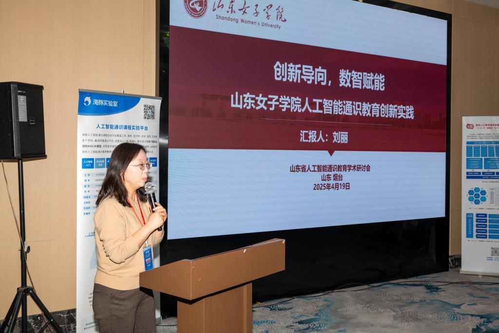 4月20日,刘丽教授在人工智能通识教育创新实践论坛中作了题为“创新导向,数智赋能——山东女子学院人工智能通识教育创新实践”的主题分享,全面展示了我校在人工智能通识教育领域的创新成果与实践经验。