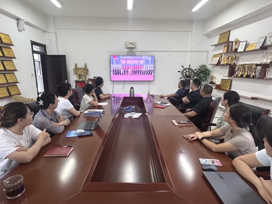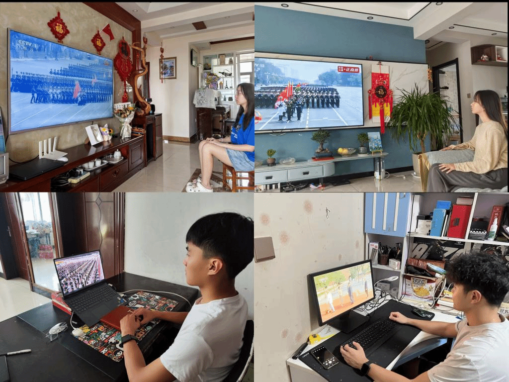 学院教师在博雅207会议室集体观看大会直播,现场氛围肃穆庄重。随着大会进程推进,当国歌奏响时,老师们自觉起身肃立;看到受阅队伍整齐列队、抗战老兵代表接受致敬的画面,大家纷纷凝神注目、神情凝重,深刻感悟抗日战争中中华民族展现出的不屈不挠精神。部分教师还在观看过程中认真记录感悟,计划将历史精神融入后续课程教学,让红色教育与专业培养同频共振。与此同时,学院全体学生通过居家在线观看的方式参与活动,大家自发通过电视、电脑、手机等终端准时收看直播,不少学生在观看后通过班级群、朋友圈分享感悟,表达对革命先烈的崇敬之情与对国家发展的自豪之感。这些分享既打破了空间阻隔,更让红色信仰在学子心中扎根,汇聚起青春奋进的力量。