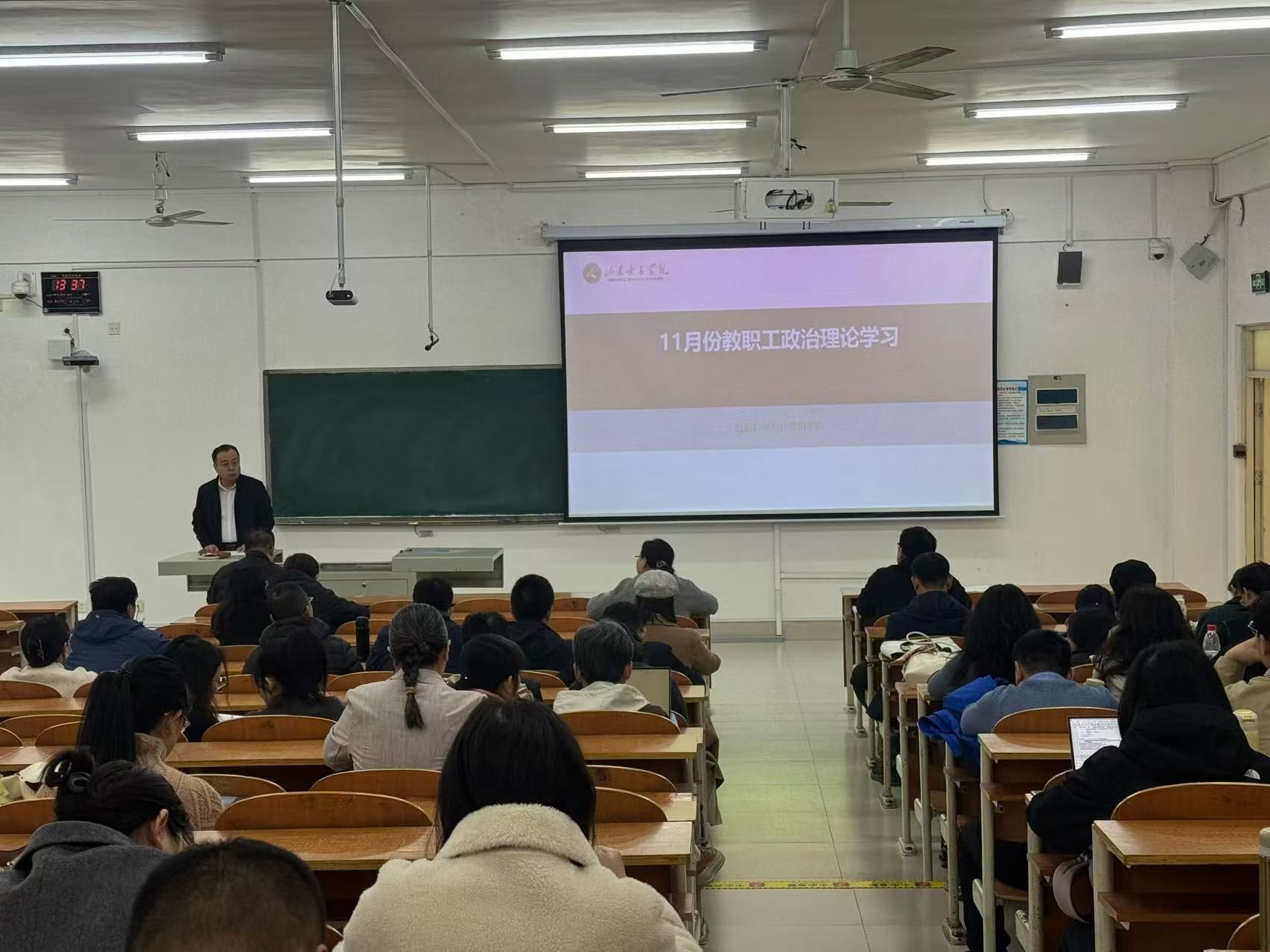 为深入学习贯彻党的二十届四中全会精神,准确把握 “十五五” 时期国家发展战略部署,切实提升教职工的政治理论素养和履职担当能力,11 月 6日,数据科学与计算机学院党委在博文104组织召开十一月份教职工政治理论学习活动,全体教职工参加学习。