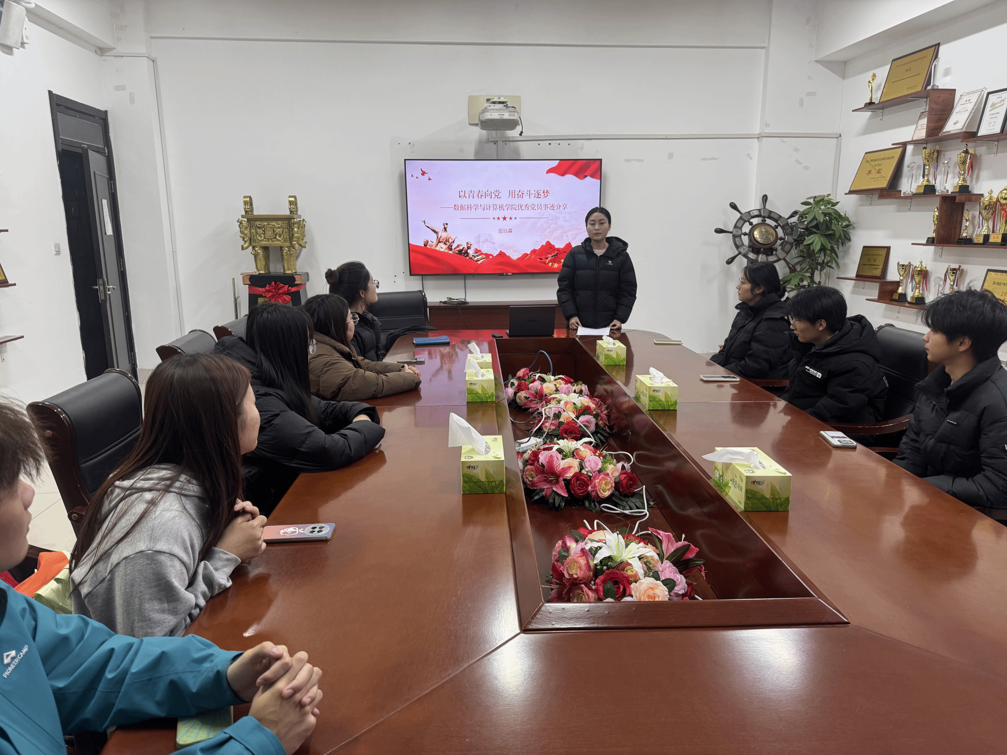 随后,优秀党员张钰淼分享成长事迹。她围绕“青春向党、奋斗逐梦”,从理论淬炼、服务奉献、勤学实干、知行合一四方面,讲述斩获校级一等奖学金、国家级竞赛奖项,以及参与“三下乡”、志愿服务的经历,诠释青年党员的初心担当。她还寄予同学们厚望,勉励大家以信仰为帆、以奋斗为桨,让个人成长与党和国家事业同向同行,在青春赛道跑出好成绩。
