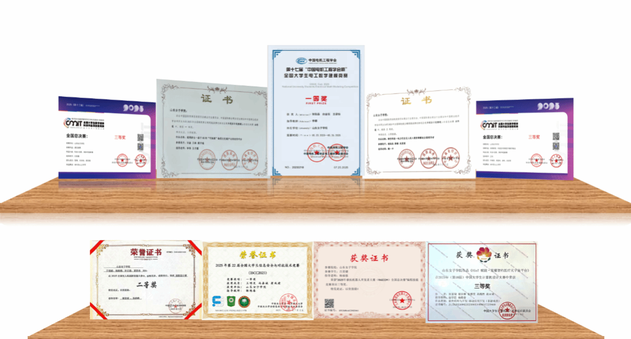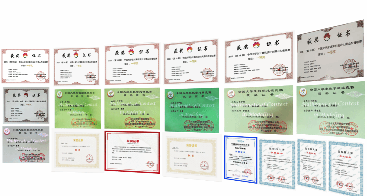 省级赛场同样亮点纷呈,学子们以科创之力回应社会需求,用专业所长书写责任担当。在中国国际大学生创新大赛中,学院团队凭借“遗梦重塑——基于神经辐射场与强化学习的市县级博物馆破损文物完整呈现与文化普惠创新方案”“‘焰’消云散——耐高温消防机器人及耐高温技术服务供应商”等优质作品斩获省级奖项2项,实现了技术研发与社会需求的精准对接。中国大学生计算机设计大赛中,学院收获省级一等奖7项、二等奖8项、三等奖5项,“光韵之书”“数字古韵物理馆”等作品将数字技术与文化传承深度融合,让传统文化在创新表达中焕发新生;全国大学生数学建模竞赛勇夺省级一等奖7项、二等奖5项,参赛团队聚焦实际产业与社会问题,运用多元线性回归、遗传算法等专业知识构建模型、破解难题,展现了扎实的数理功底与应用能力。此外,在蓝桥杯全国软件和信息技术专业人才大赛、全国大学生统计建模大赛、中国高校计算机大赛等赛事中,学院学子屡创佳绩,累计斩获省级一等奖1项、二等奖6项、三等奖7项,奖项覆盖编程开发、网络安全、数据统计等多个核心专业领域,全方位彰显了学院人才培养的广度与深度。