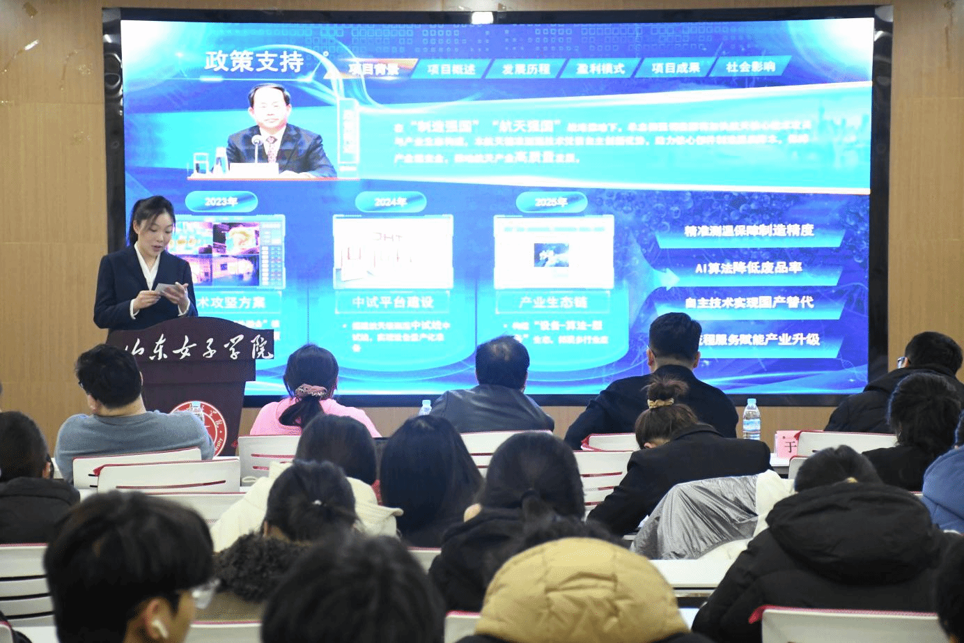 院赛现场,各参赛团队依次进行项目路演。各项目全面阐述项目背景、创新亮点、实施计划、社会价值与产业前景等核心内容。充分体现了我院学子们将理论知识转化为实践成果的能力。答辩环节中,评委老师围绕项目创新性、科学性、可行性等维度进行精准提问,团队成员从容应答、深入交流,展现出扎实的专业功底与良好的团队协作精神。