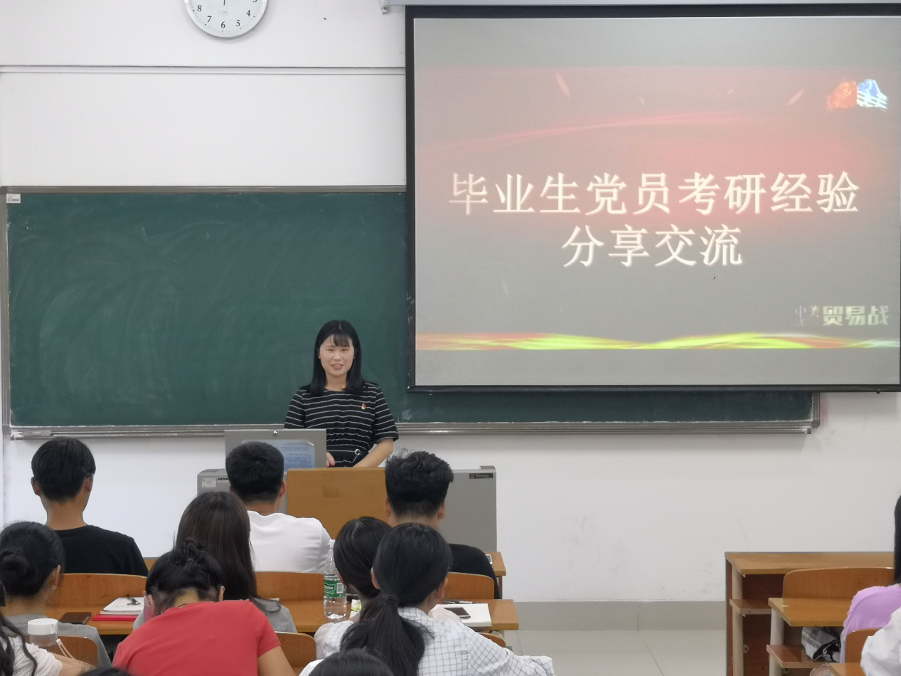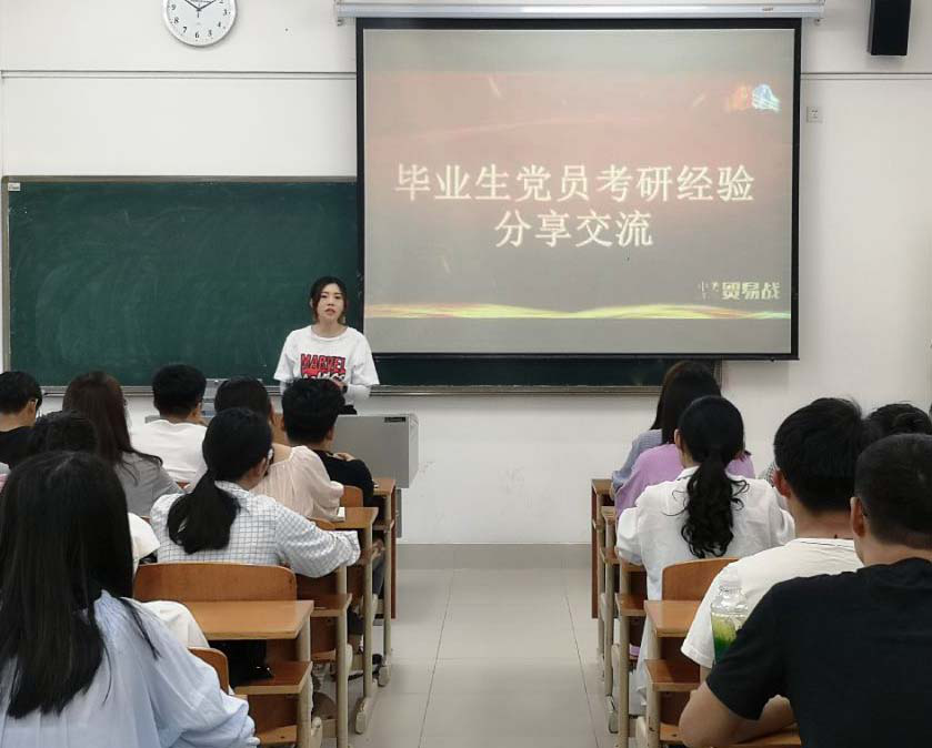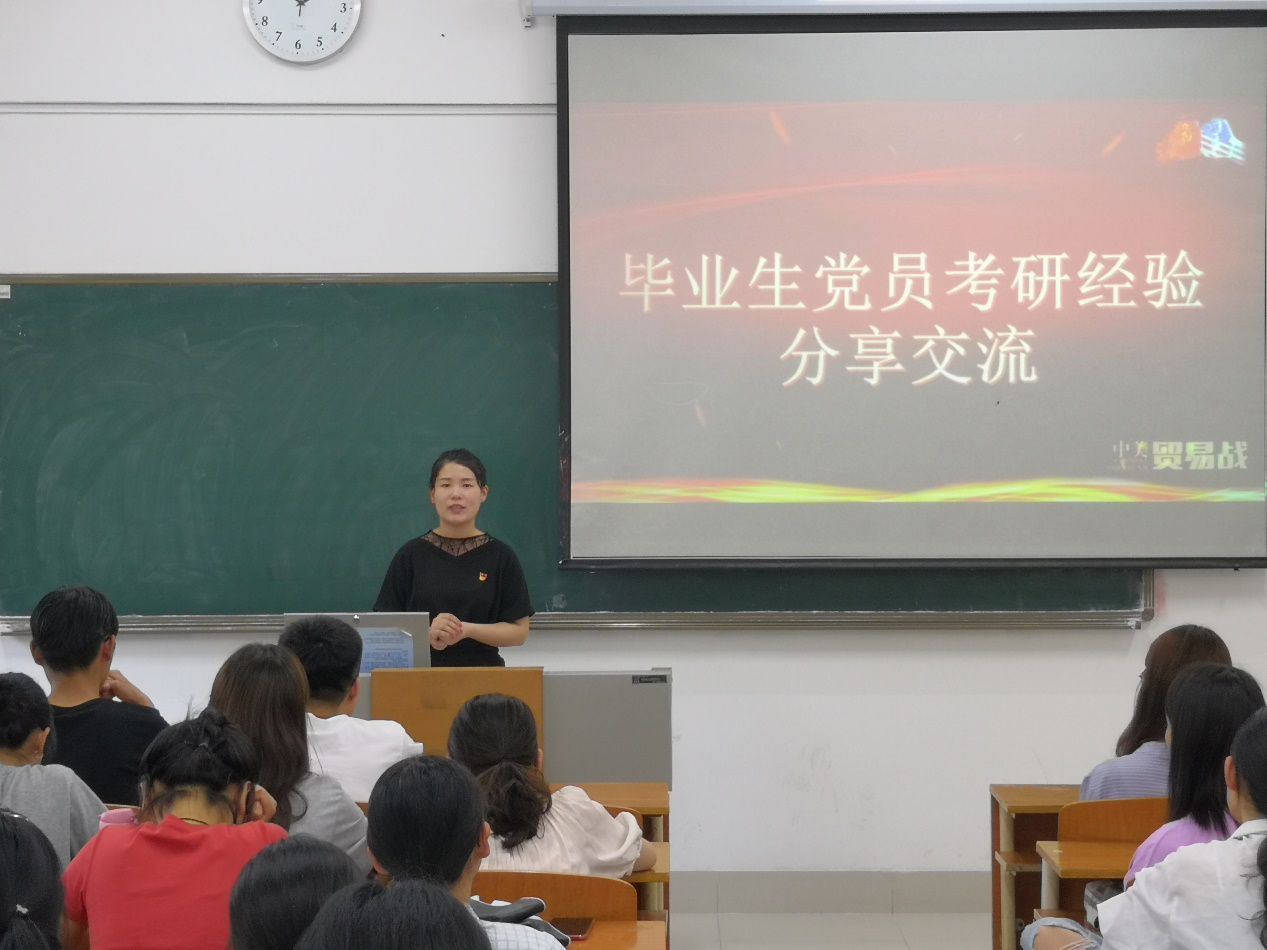 最后,毕业生党员们给在座的党员及积极分子们做现场解答,针对所提疑问给予解析并予以祝福,祝福那些想考研者都能如愿考入自己满意院校,并展翅高飞。分享交流会结束,我院学子都深有感触,通过此次讲座,在校生党员不仅能够在今后考研道路上,披荆斩棘,而且更好地发挥自己党员意识,积极为班级同学服务,践行党员承诺。