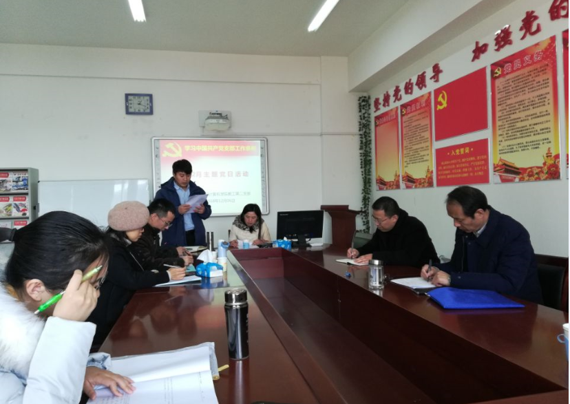 首先支部组织委员杨福强老师给大家认真宣读了《中国共产党支部工作条例(试行)》,然后全体党员进行了交流讨论。