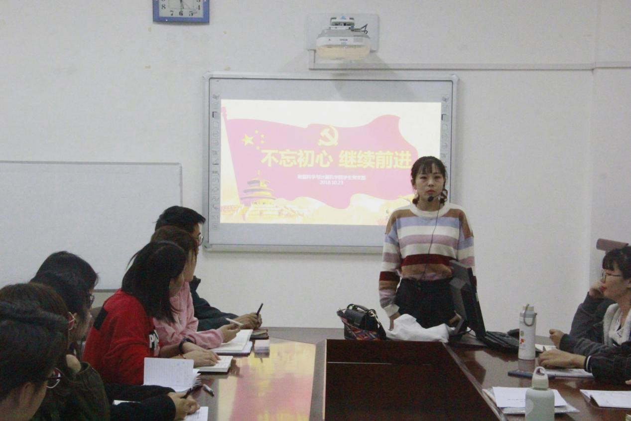 何为初心?佛经《华严经》有文:“不忘初心,方得始终”。坚持不忘初心,继续前进,就要坚持中国特色社会主义道路自信、理论自信、制度自信、文化自信,坚持党的基本路线不动摇,不断把中国特色社会主义伟大事业推向前进。学生党员及发展对象先观看了专题片《不忘初心 继续前进》。《不忘初心 继续前进》是围绕以习近平同志为核心的党中央五年来治国理论的伟大实践,展现决策理念,深刻内涵和奋力推进过程,充分体现了党中央继往开来,逐梦前行的勇气。“不忘初心 继续前进”,这是习近平总书记要求的,每一个党员面对未来,面对挑战,都要争做合格共产党员当干事先锋,坚定方向,不忘初心。