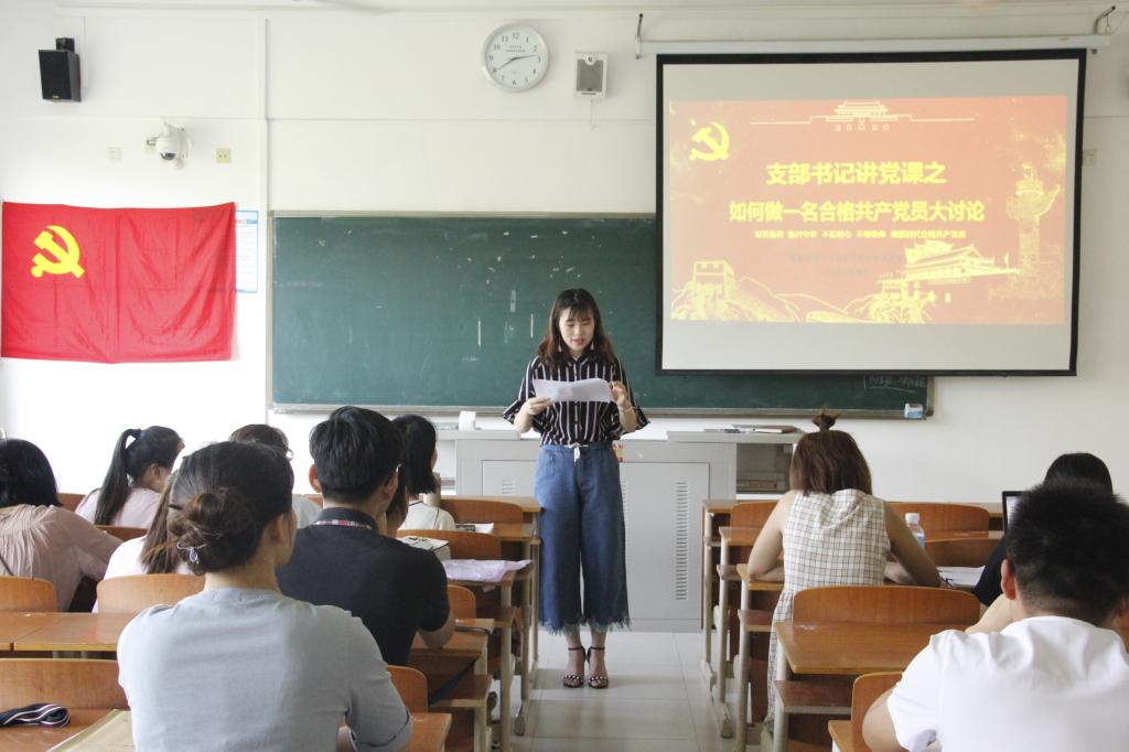 二是开展了主题党日活动。各党支部开展了以“我离合格党员有多远”为主题的主题党日活动,三个教师党支部和学生党支部的每名党员同志都根据合格党员的标准,结合学习工作生活实际进行了反思,提出了离合格共产党员的差距和今后的努力方向,对于今后更好地发挥先锋模范作用指明了方向。