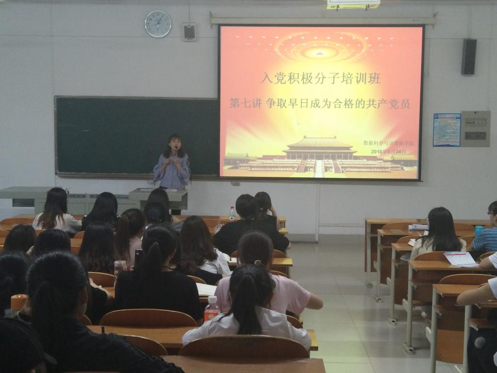 为加强学生对合格共产党员的认识与了解,数据科学与计算机学院学生党支部魏老师于5月24日在博文楼101对入党积极分子进行了主题为“争取早日成为合格的共产党员”的培训。